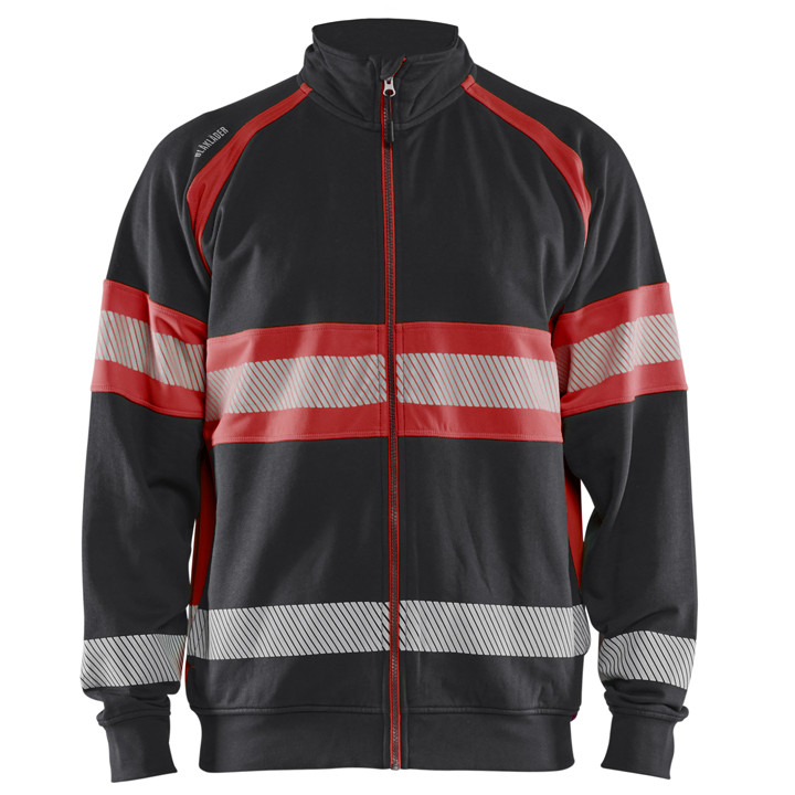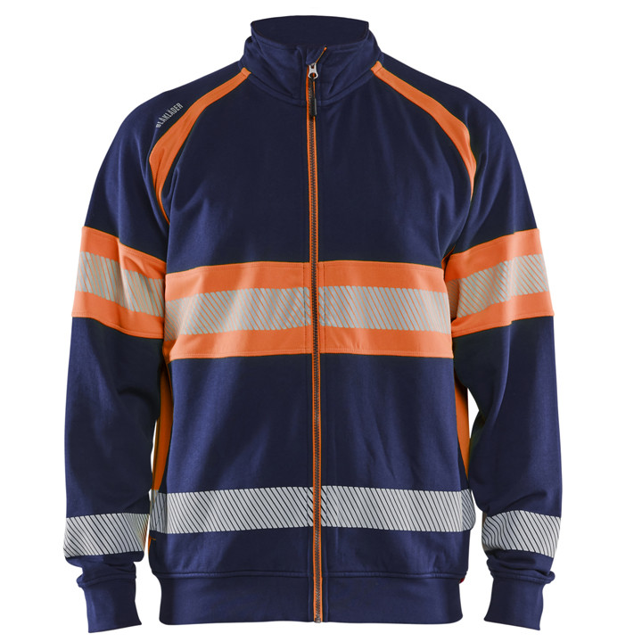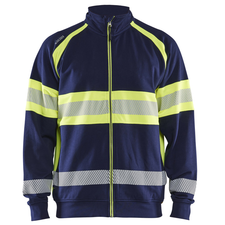 Jól láthatósági cipzáras pulóver – pamut komfort, széles fényvisszaverő csíkokkal