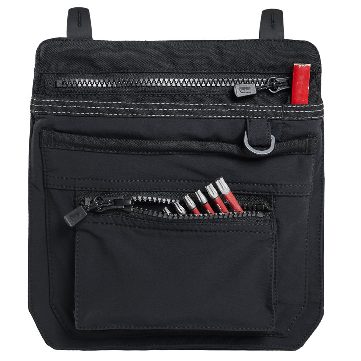 Tulajdonságok: Kompakt szerszámtartó zseb; moduláris ToolRig™ rögzítés; 4 zseb; 2 cipzáras rekesz; D-gyűrű; CORDURA® megerősítés; strapabíró kivitel