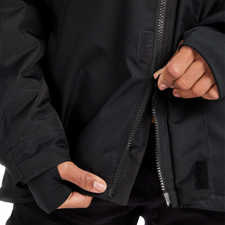 Kialakítás: húzózsinórral állítható alsó szegély; tépőzárral állítható ujjvégek; belső rugalmas csuklórész hüvelykujjlyukkal