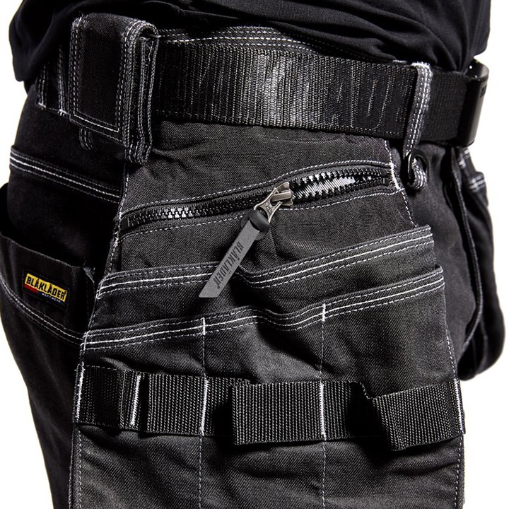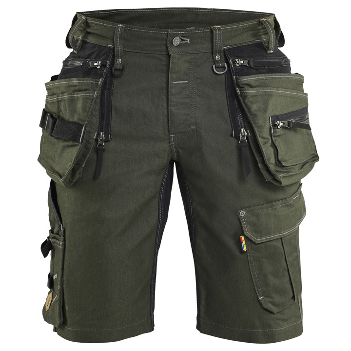 Funkcionális munkás rövidnadrág Cordura® stretch farmerből, rugalmas betétekkel a lágyéknál a maximális mozgásszabadság és kényelem érdekében. A nadrág CORDURA®-erősítésű szerszámtartókkal, hátsó zsebekkel és vonalzótartóval rendelkezik, hogy minden munkaeszköz könnyen elérhető legyen.
